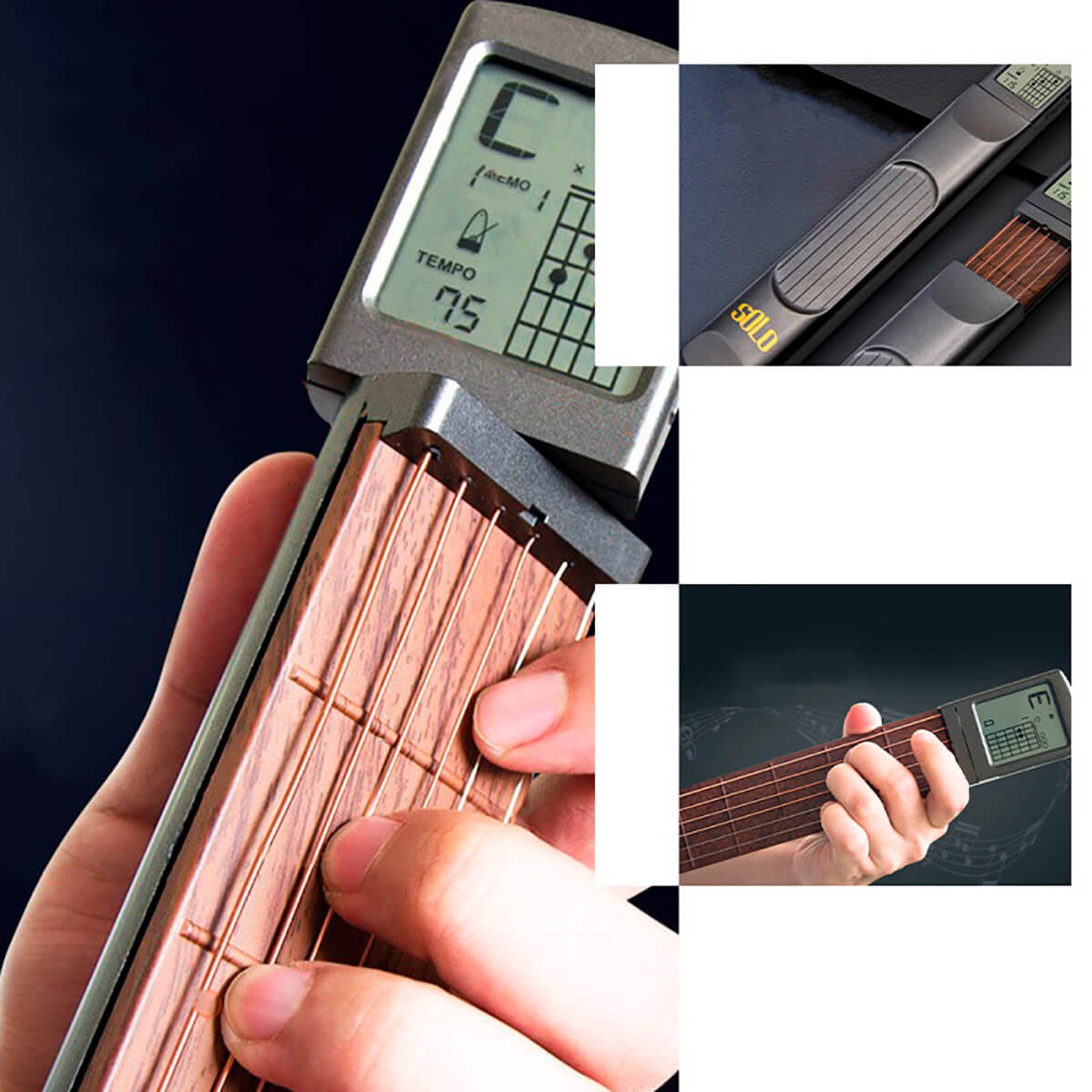 Тренажер для пальцев SOLO для игры на гитаре 6 струн поможет вам легко практиковать более 400 аккордов, постоянно улучшать и настраивать весь аккорд, свободно практиковаться, выбирать скорость ритма, увеличивать и уменьшать дизайн сжатия, а так же носить его с собой в любое время и в любом месте для практики.