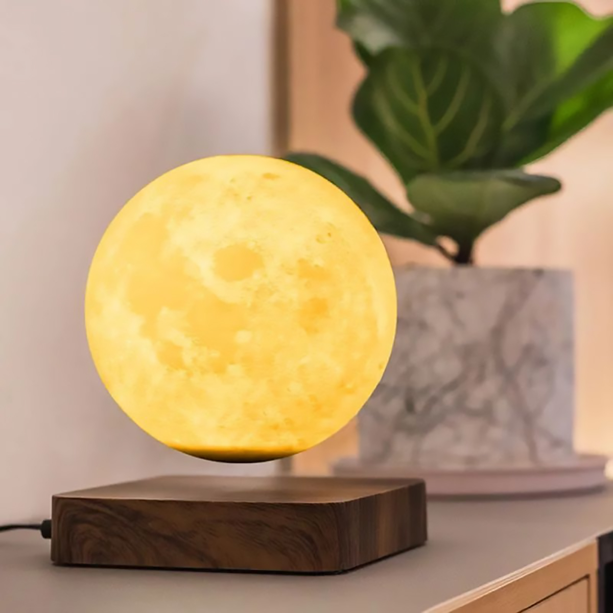 Лампа создает иллюзию летящей по небу Луны, что делает ее идеальным дополнением к интерьеру спальни, офиса или любого другого помещения.